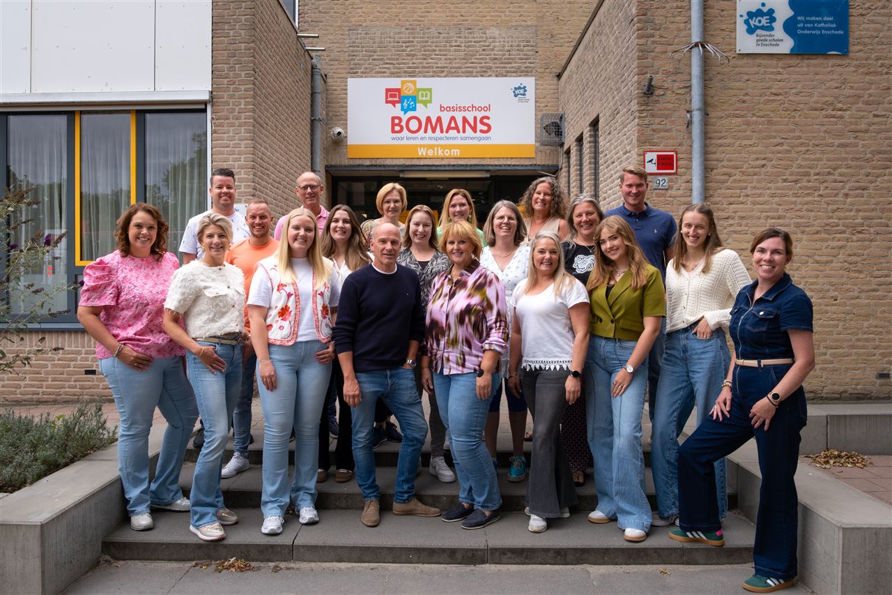 Het team bestaat uit 21 medewerkers, een Leraar In Opleiding en er zijn jaarlijks stagiaires in de school. Samen vormen we een heel gedreven team dat volop in ontwikkeling blijft, omdat we heel gemotiveerd zijn de goede dingen goed te doen voor onze leerlingen en ook omdat we willen blijven aansluiten op ontwikkelingen in het onderwijs en in de maatschappij. Binnen ons team zijn er collega's die zich op specifieke gebieden hebben gespecialiseerd: taal, rekenen, identiteit en gedrag. Dat maakt het team van de Bomans een compleet en professioneel team.